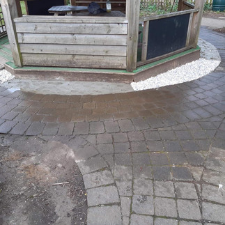 Also to bring back to life a wooden play gazebo area by covering a muddy area at the base with something practical and fun!